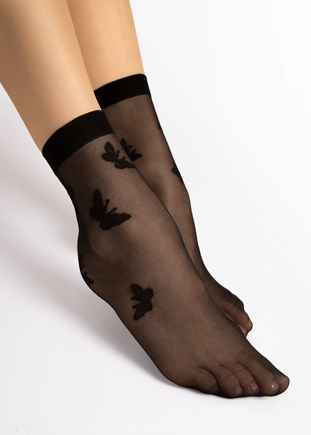 Calcetines cortos de 15 deniers con puño delgado y diseño a mariposas. Talla única