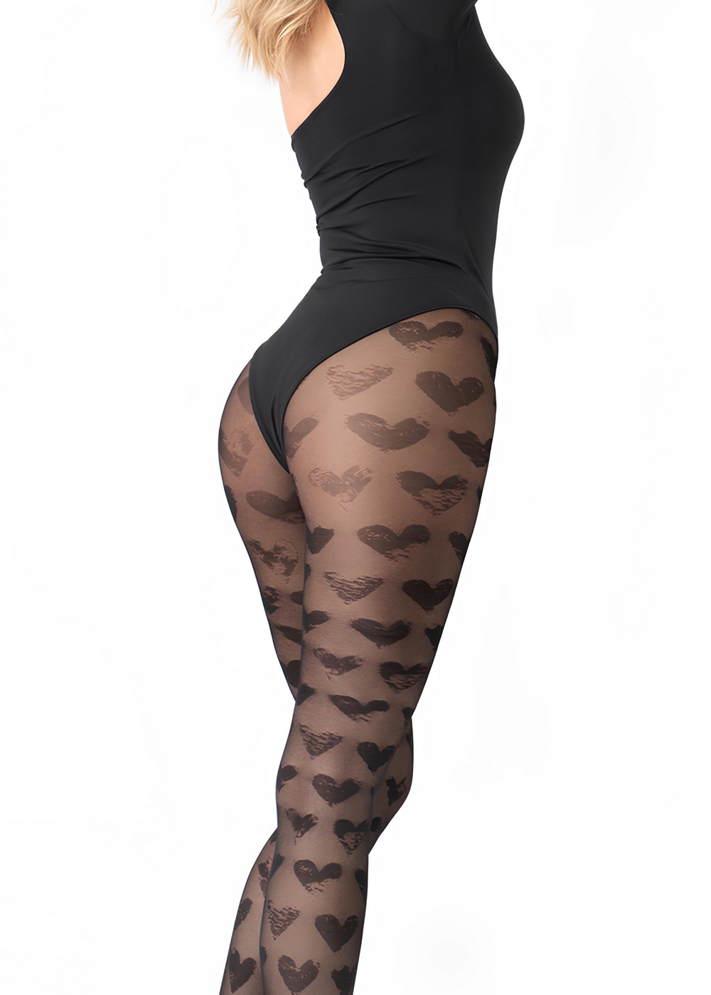 Panties semi opacas de 30 deniers con diseño a corazones estampados en toda la pierna.